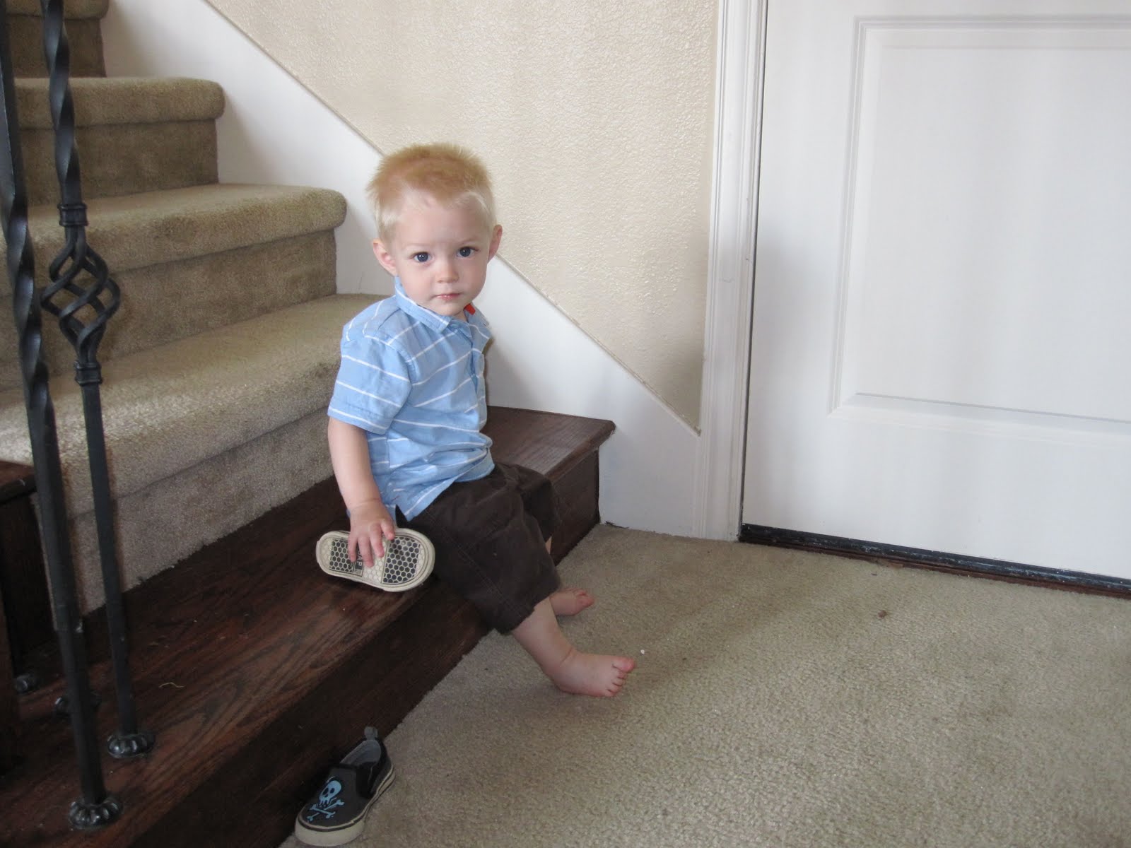 5. is now talking in 2 to 3 word utterances. He seems to picking up words all the time. Yesterday he came up and said "where's the shoe." Then he spent 10 mins trying to figure out how to put on his shoes. He is constantly trying to figure out how to put on his shoes. Oh and he throws a fit if I take off his shoes. He likes to wear them all the time. Probably because he is hoping to go outside.